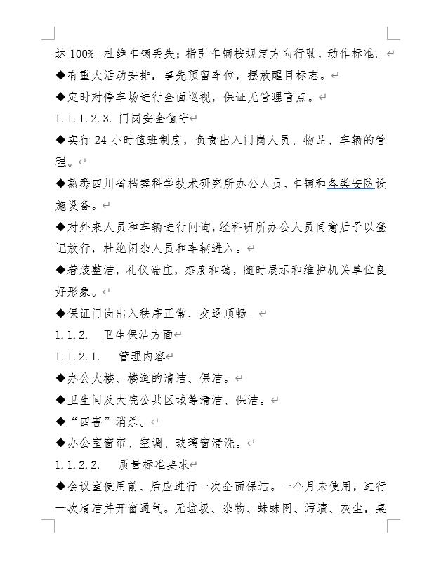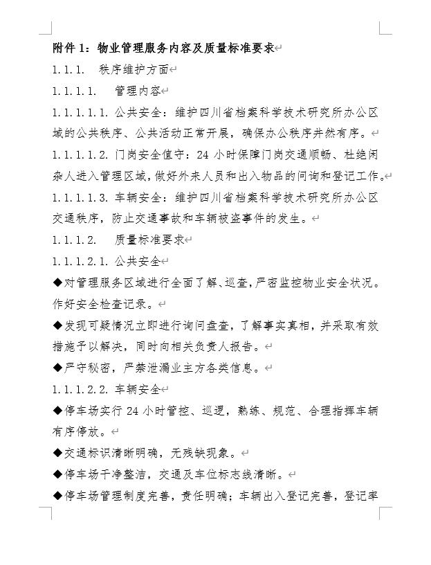 1.公共安全:维护四川省档案科学技术研究所办公区域的公共秩序、公共活动正常开展,确保办公秩序井然有序。