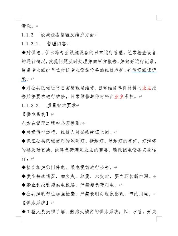 1.对供电、供水等专业设施设备的日常运行管理,检查设备的运行情况,发现问题及时处理并向业主报告,做好运行记录。