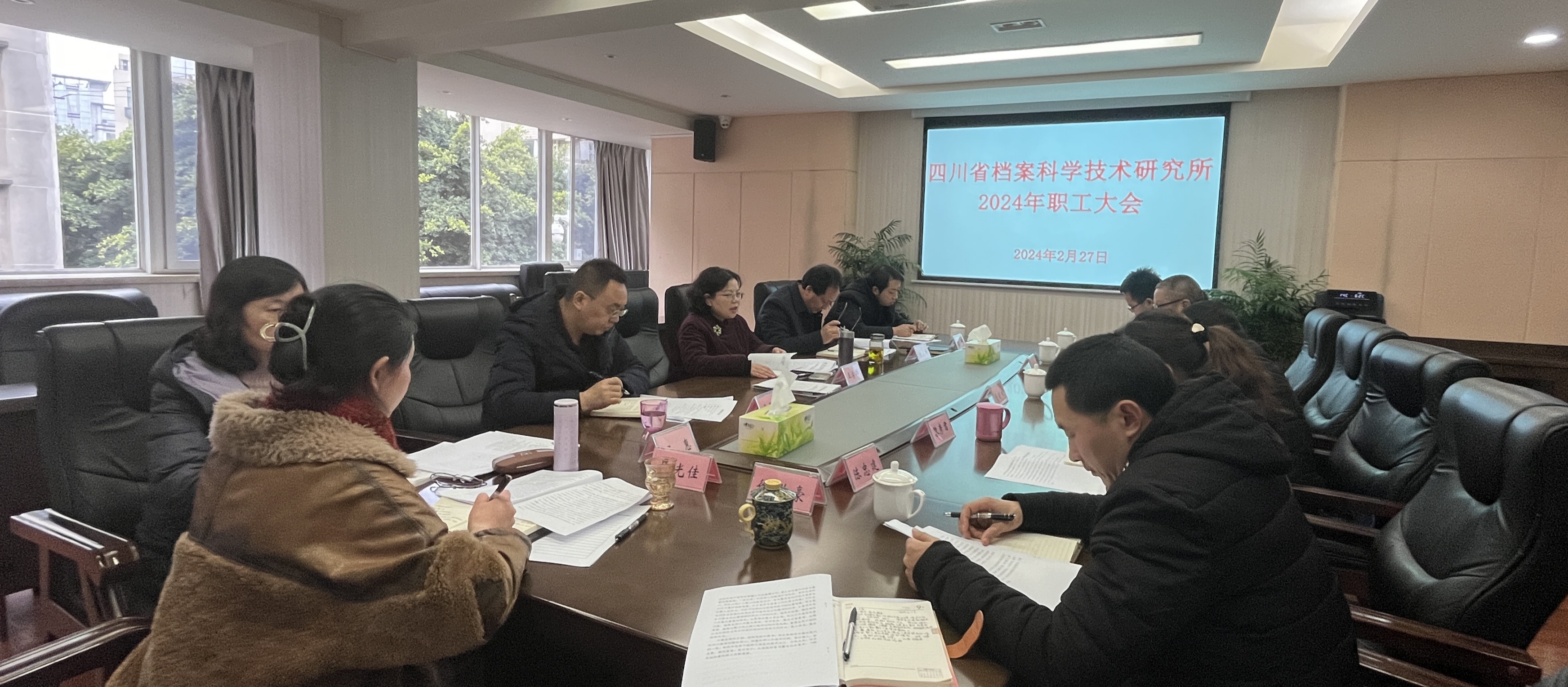 近日,省档案科研所召开职工大会,安排部署科研所2024年重点工作。省档案馆副馆长王学群到会指导,所长方永然主持会议。