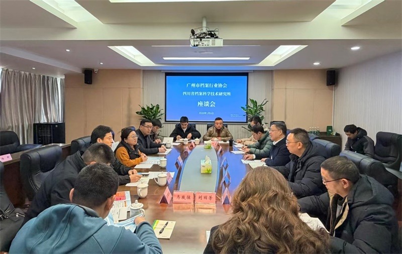 2026年1月6日,广州市档案行业协会代表一行赴四川省档案科学技术研究所(以下简称“省档案科研所”)开展座谈交流,双方围绕档案事业高质量发展,展开全方位深度研讨,凝聚合作共识。